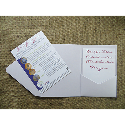 While a gift certificate is lovely, this kit allows you to present the recipient with something tangible - an elegant planning kit that makes the process of designing their stole an experience.